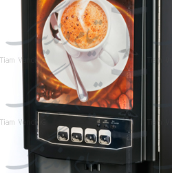 دستگاه tiam sc4-cd دارای سه مخزن پودر می باشد که قابلیت ارائه سه نوشیدنی گرم از خانواده قهوه و کشلات و ارائه یک انتخاب مجزا را از مجرای جداگانه دارا می باشد.از ویژگی های بارز این دستگاه ارائه لیوان به شکل اتوماتیک می باشد که پس از فشار دکمه نوشیدنی مورد نظر لیوان از داخل دستگاه به بیرون انتقال داده شده و نوشیدنی پر می شود و به راحتی میتوان لیوان نوشیدنی را از جایگاه برداشت.دستگاه ذکر شده قابلیت اتصال به انواع کارت خوان های بانکی برای مشتریان عمومی و کارت های rfid جهت استفاده ی کارکنان شرکت ها را دارا می باشد.